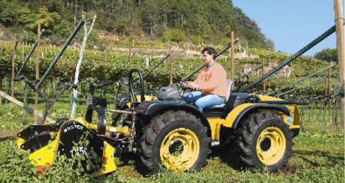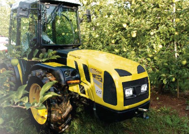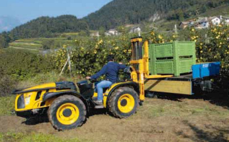 Z kolei wersja ze skrętnymi przednimi kołami znajduje swoje zastosowanie przy koszeniu obszarów o dużym nachyleniu terenu, transporcie i załadunku w gospodarstwach sadowniczych oraz pracach komunalnych i utrzymaniu obszarów zieleni.